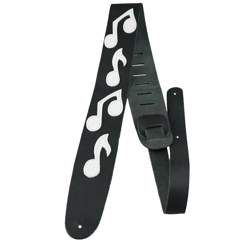 2.5 inch Black Leather with White Leather Musical Notes Adjustable length 41 to 56 SKU: P25MN-217