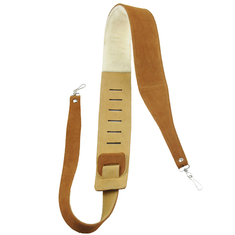 2.5 inch Tan Suede Banjo Strap with Metal Hooks. Adjustable length