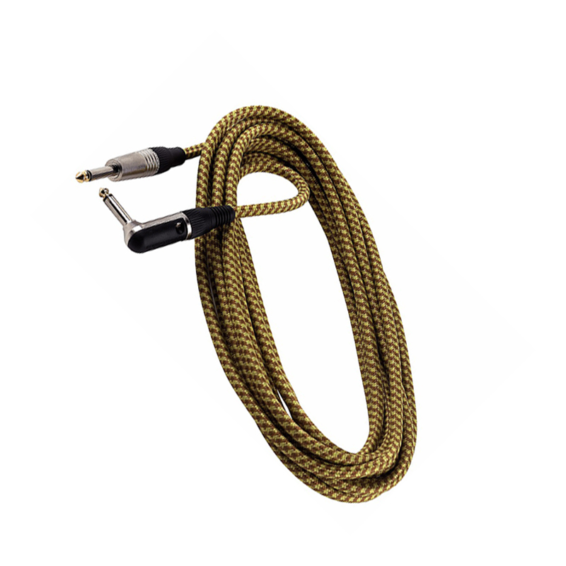 - Instrument cable, cloth woven - straight/angled 1/4" metal plugs - gold-plated tip - Length 3 meters - outer diameter 7mm - Gold